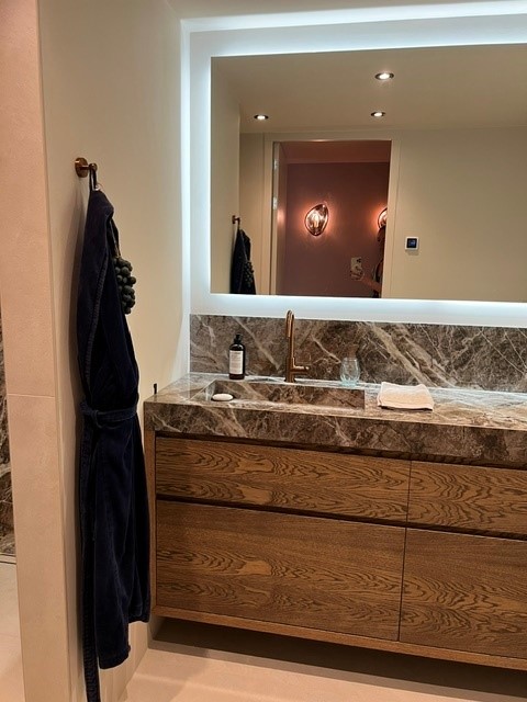 Wij begeleiden het hele traject: van ontwerp tot oplevering. Onze projecten combineren vakmanschap, luxe materialen en hoogwaardige sanitairmerken.